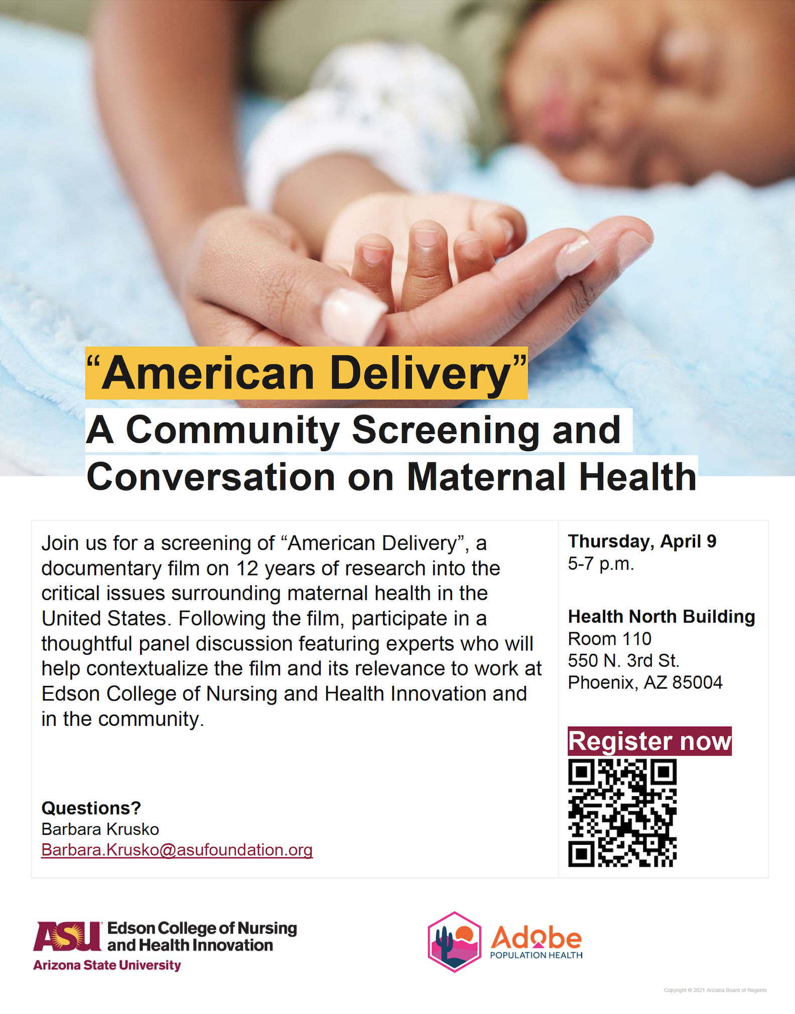 Thursday April 9, 2026 5-7pm Phoenix time Health North Building Room 110 550 N. 3rd St., Phoenix, AZ 85004