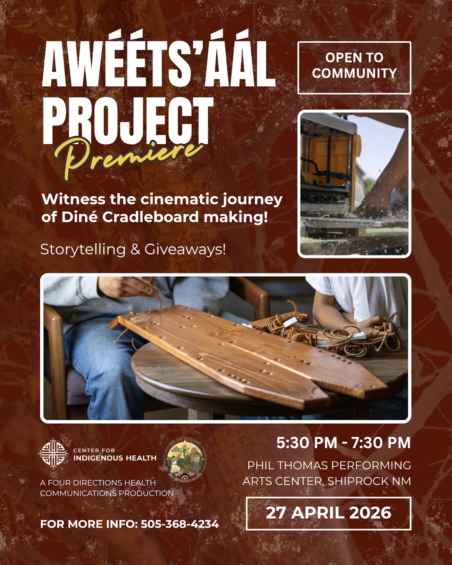 April 27 5:30-7:30pm Navajo time at the Phil Thomas Performing Arts Center in Shiprock, NM