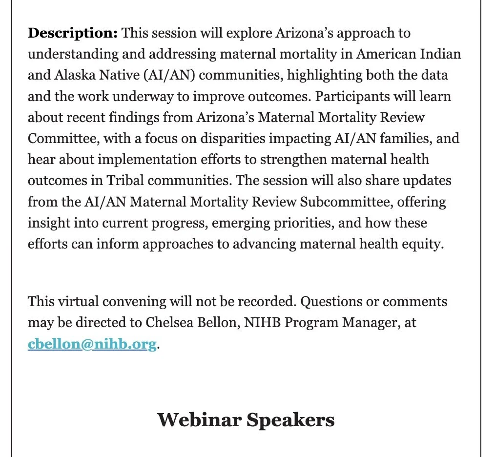 Topic: Arizona’s Approach to Understanding and Addressing Maternal Mortality in American Indian and Alaska Native Communities