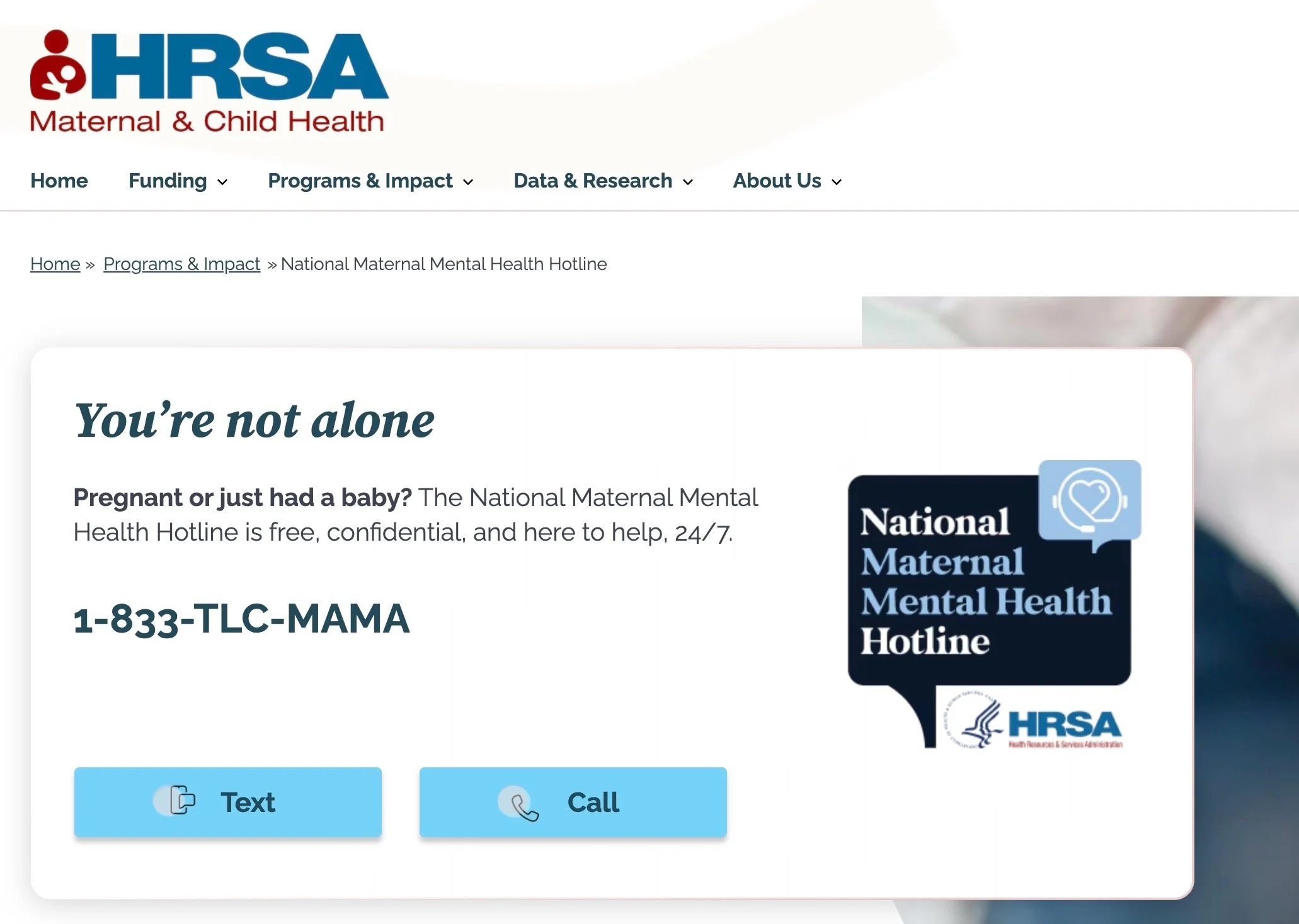 Pregnant or just had a baby? The National Maternal Mental Health Hotline is free, confidential, and here to help, 24/7. You can get help right now. Reach out anytime - if you’re feeling overwhelmed, anxious, or if you just need someone to talk to.